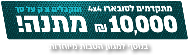 מחיר כולל א. רישוי 212,543 ₪ המחיר מתייחס לדגם FORESTER PREMIUM ג'נט רגיל לא כולל צבע מטאלי, המחיר אינו כולל אבזור ותוספות ע"פ מחיר מחירון 01/25. צריכת הדלק בפועל מושפעת גם מתנאי הדרך, מתחזוקת הרכב ומאפייני הנהיגה ויכולה אף להגיע לפער משמעותי ביחס לנתוני המעבדה. הגורם המממן שומר על זכותו לשנות את תנאי המסלולים או לבטלם בכל עת. מסלול מימון 100% ומסלול חודשי הינו הלוואה ללקוחות שיאושרו מעל גיל 24 באמצעות גורמים מממנים צד ג', באחריותם ובכפוף להסכמתם ואישורם ועפ"י יתר תנאיהם ובטחונות נדרשים. עד- 99 תשלומים חודשיים בהוראת קבע , בתוספת מקדמה. בהלוואה עד 60 תשלומים בלבד אפשרות לתוספת תשלום בסוף תקופה . מבוסס על ריבית פריים + 2% (וכפוף לשינויים בריבית הפריים) או צמוד מדד + 4.4% ובתוספת עמלת הקמה של 1% מגובה ההלוואה בהלוואות מעל- 100,000 ₪ + דמי שעבוד בסך 370 ₪. לא כולל אגרת רישוי שתיווסף למקדמה. אי עמידה בפירעון ההלוואה עלול לגרום לחיוב בריבית פיגורים והליכי הוצאה לפועל. הגורם המממן שומר על זכותו לשנות את תנאי המסלולים או לבטלם בכל עת. מסלול ליסינג הינו עסקת החכרה ל- 36 חודשים של רכב הנותר בבעלות ועל שם החברה, כפוף לתשלום חד פעמי ראשון בסך 14,900 ₪ ו- 36 תשלומים חודשיים צמודים לשיעור עליית מדד המחירים לצרכן. תמחור זה תקף לנסיעה של 20,000 ק"מ בשנה לנהג מעל גיל 24 ורישיון מעל לשנה לפחות וכולל אגרת רישוי, ביטוח חובה, צד ג' ומקיף, טיפולי שגרה בהתאם להנחיות היצרן וספר הרכב במרכזי השירות של סמלת, ומיגון על פי דרישות הביטוח. כפוף לחיתום, אישור, בטחונות ויתר תנאי העסקה כפי שיפורטו בהסכם ככל וייכרת. אי השלמת תקופת העסקה כרוך בתשלום קנסות יציאה. החברה תהא רשאית להעביר את הרכב לחזקתה באופן מידי. צריכת הדלק בפועל מושפעת גם מתנאי הדרך, מתחזוקת הרכב ומאפייני הנהיגה ויכולה אף להגיע לפער משמעותי ביחס לנתוני המעבדה. הגורם המממן שומר על זכותו לשנות את תנאי המסלולים או לבטלם בכל עת. התמונה להמחשה בלבד. טל"ח